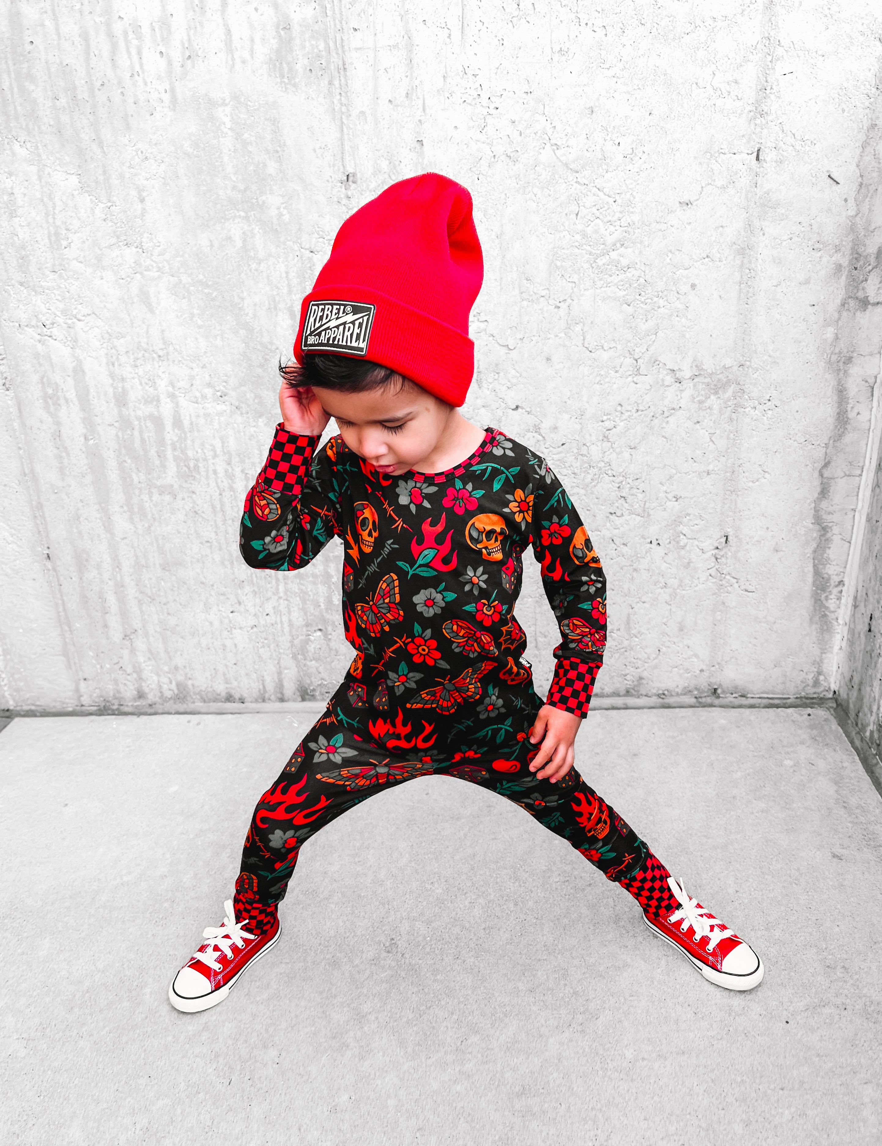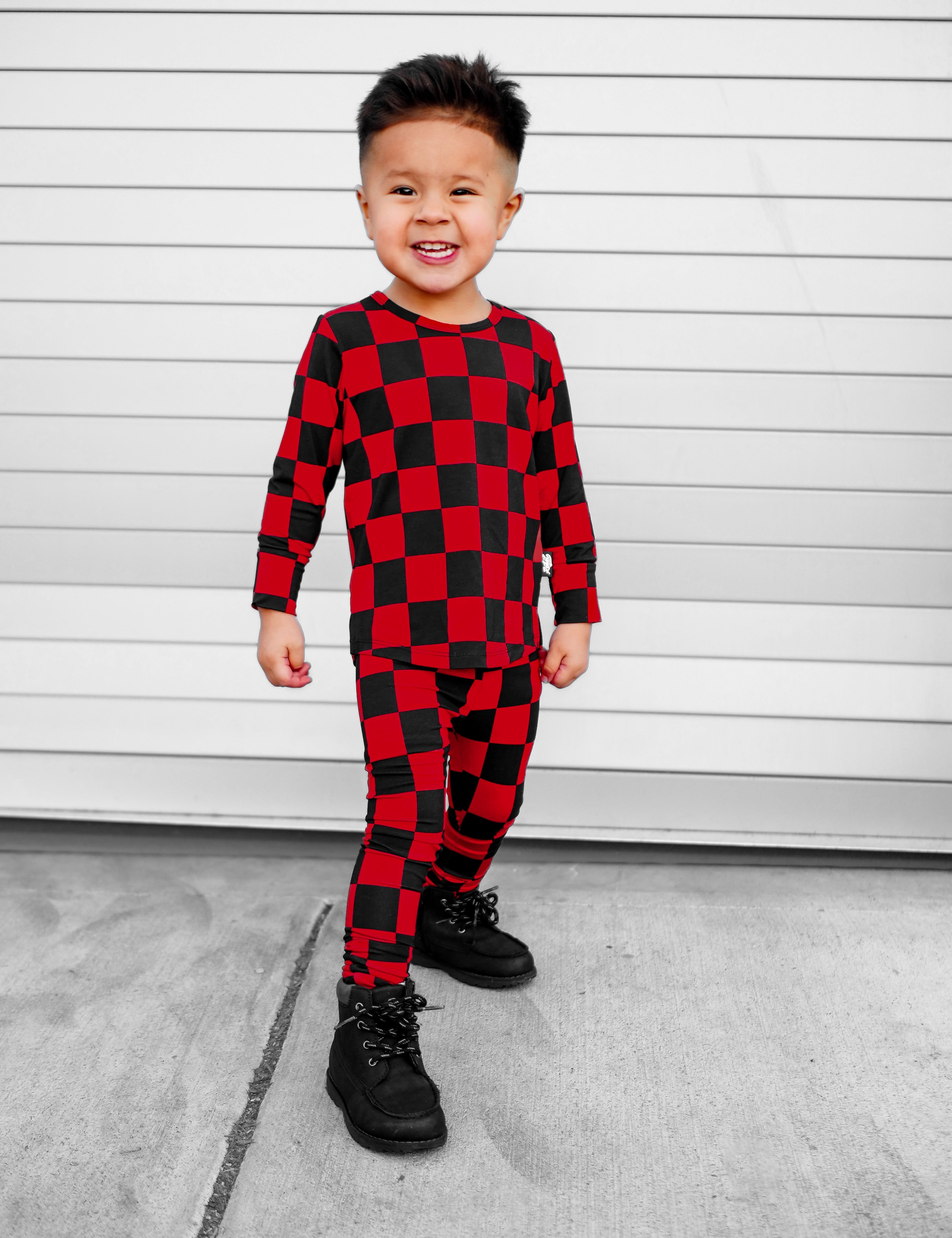 Bamboo Two Piece Set in Americana Red + Black (Checkered)