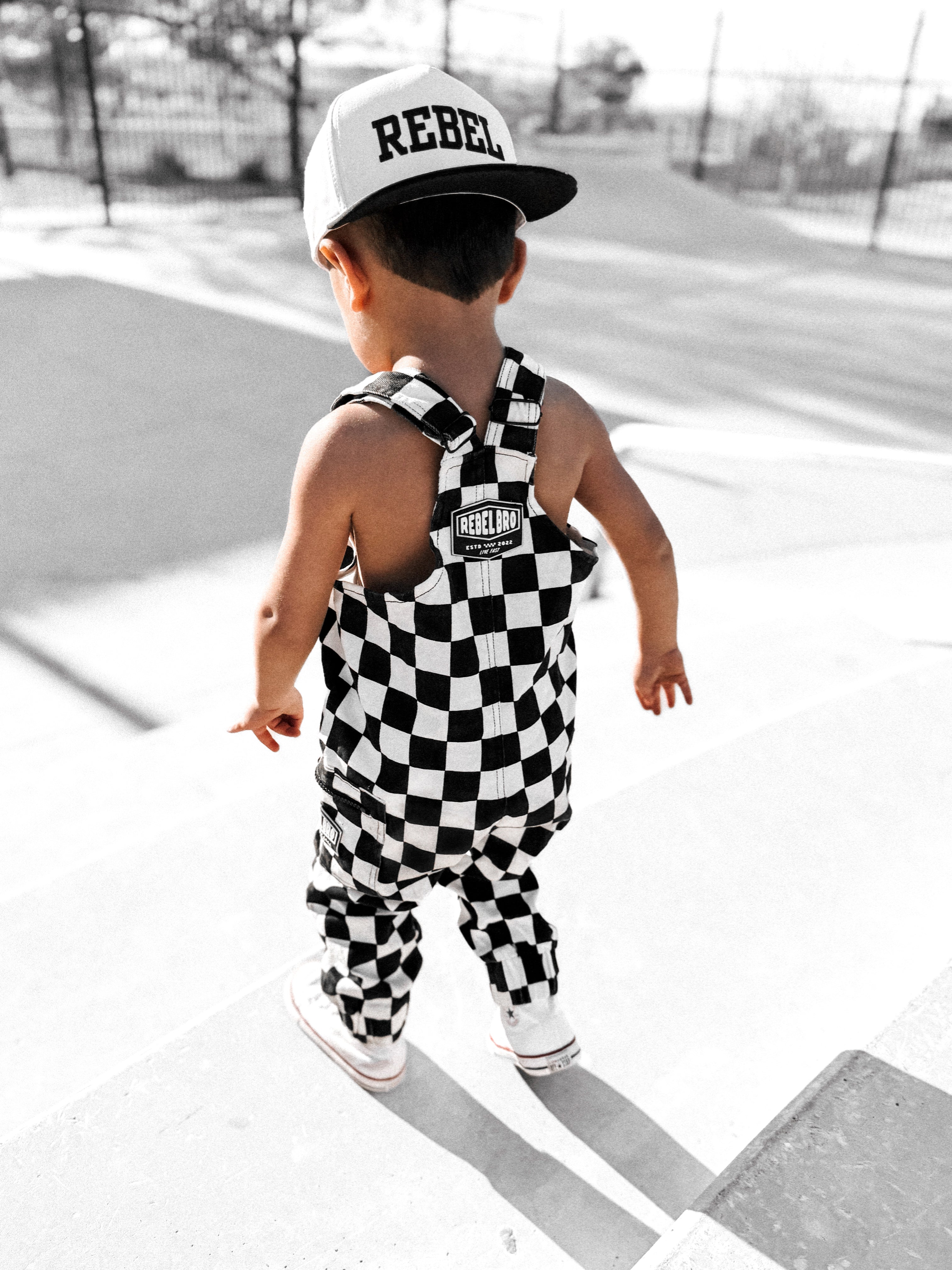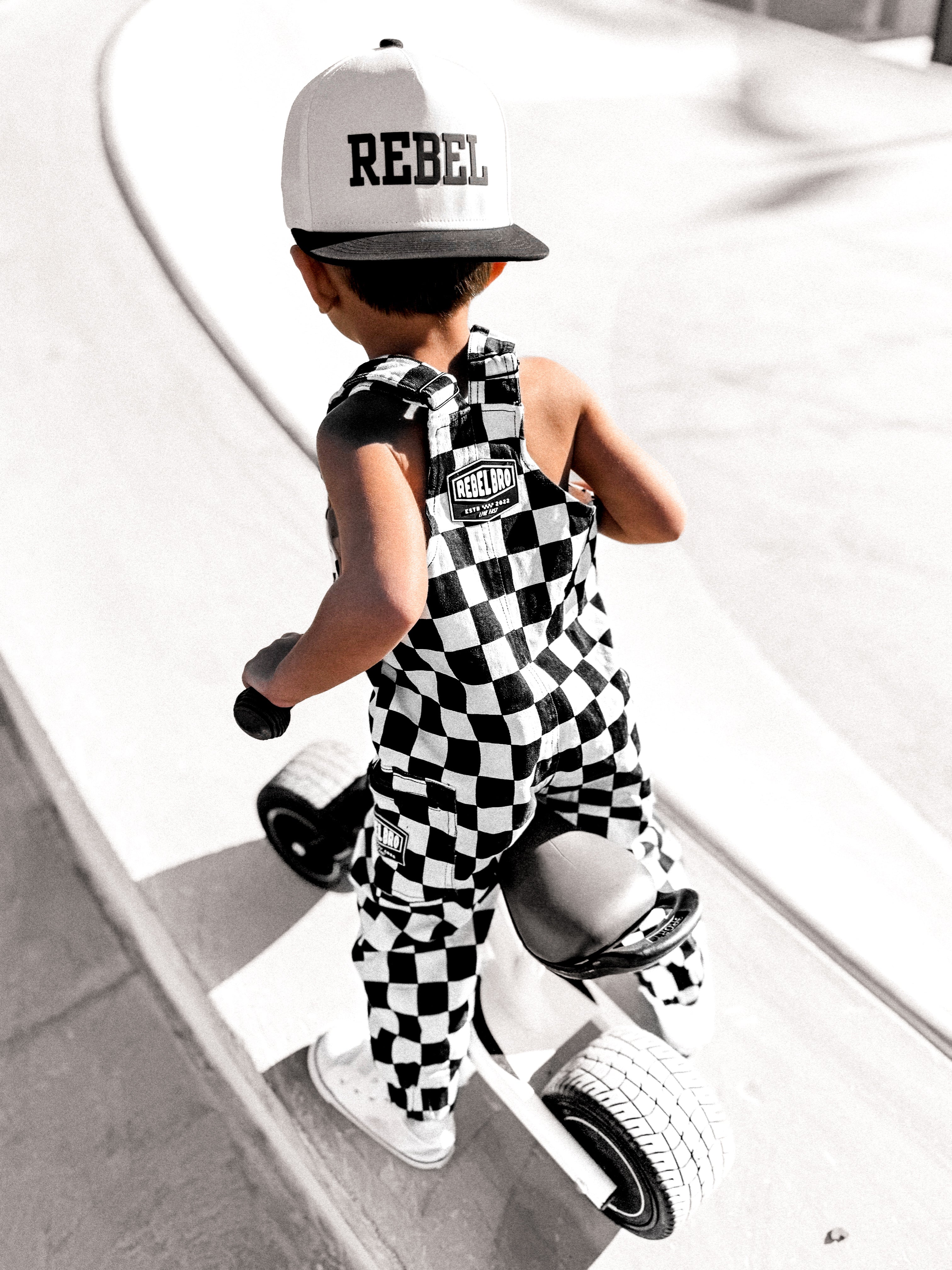 The Live Fast Checkered Overall in Venice - Rebel Bro