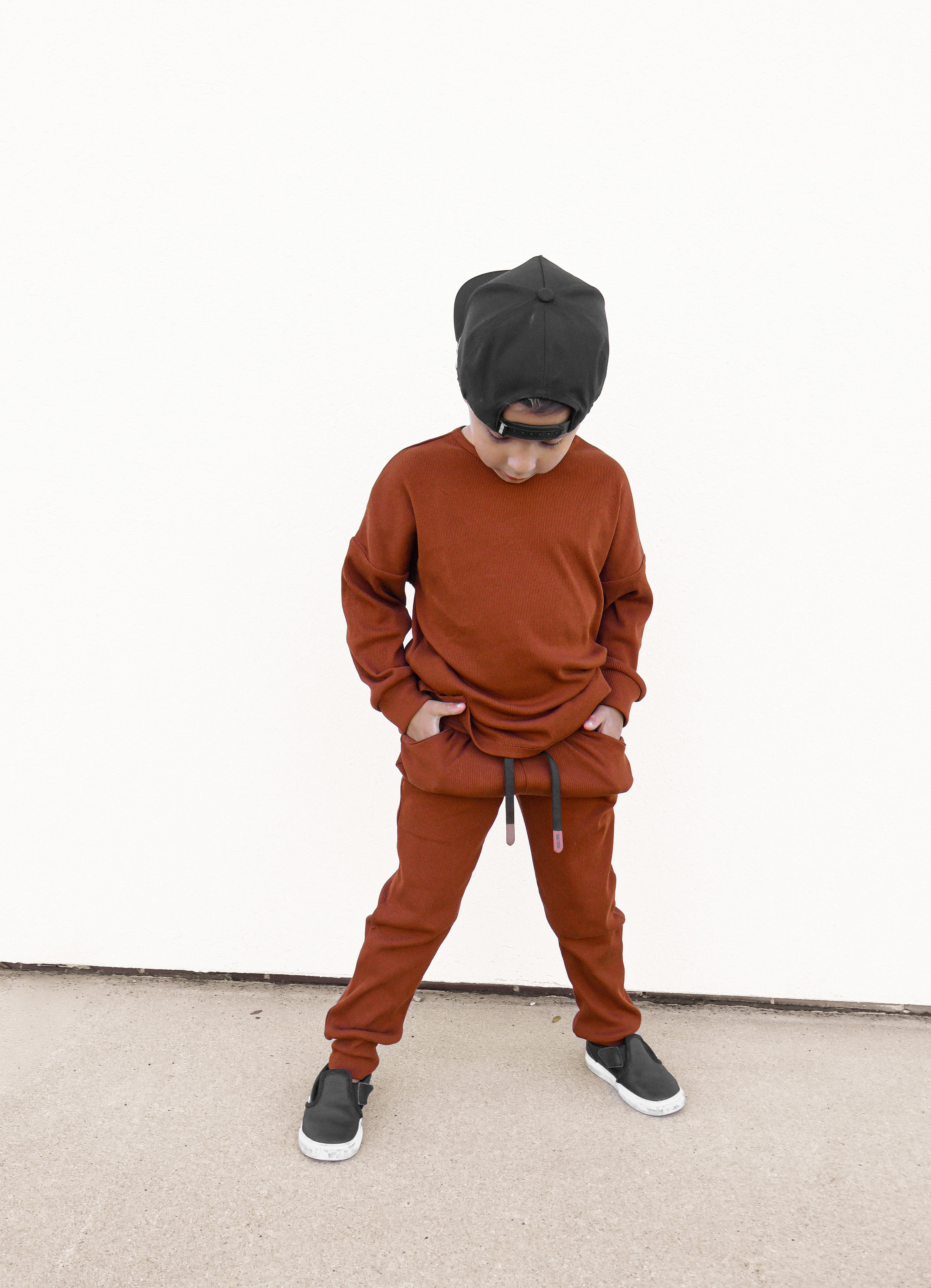 Organic Ribbed Set in Rust