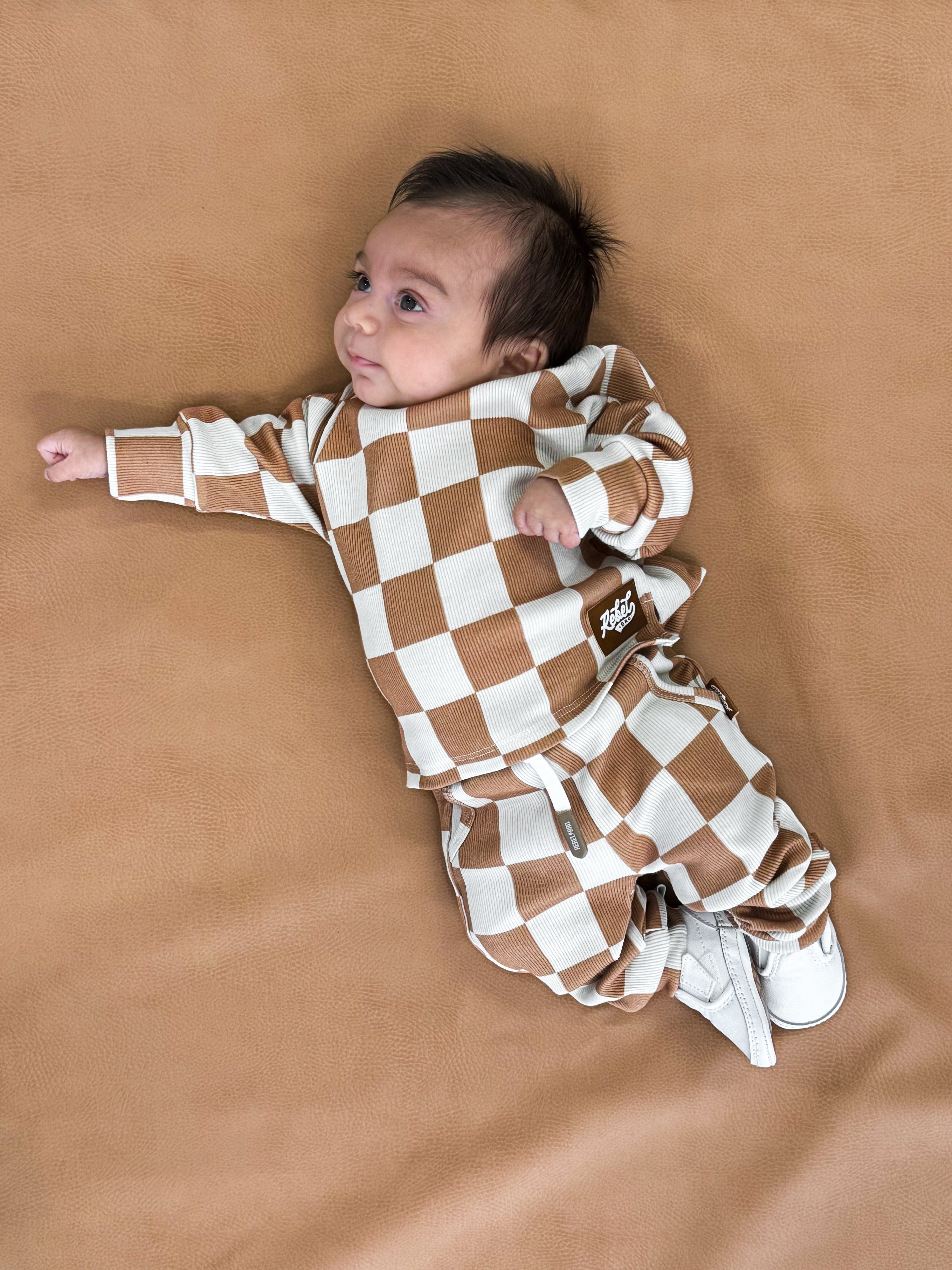 Organic Ribbed Set in Vanilla + Chestnut