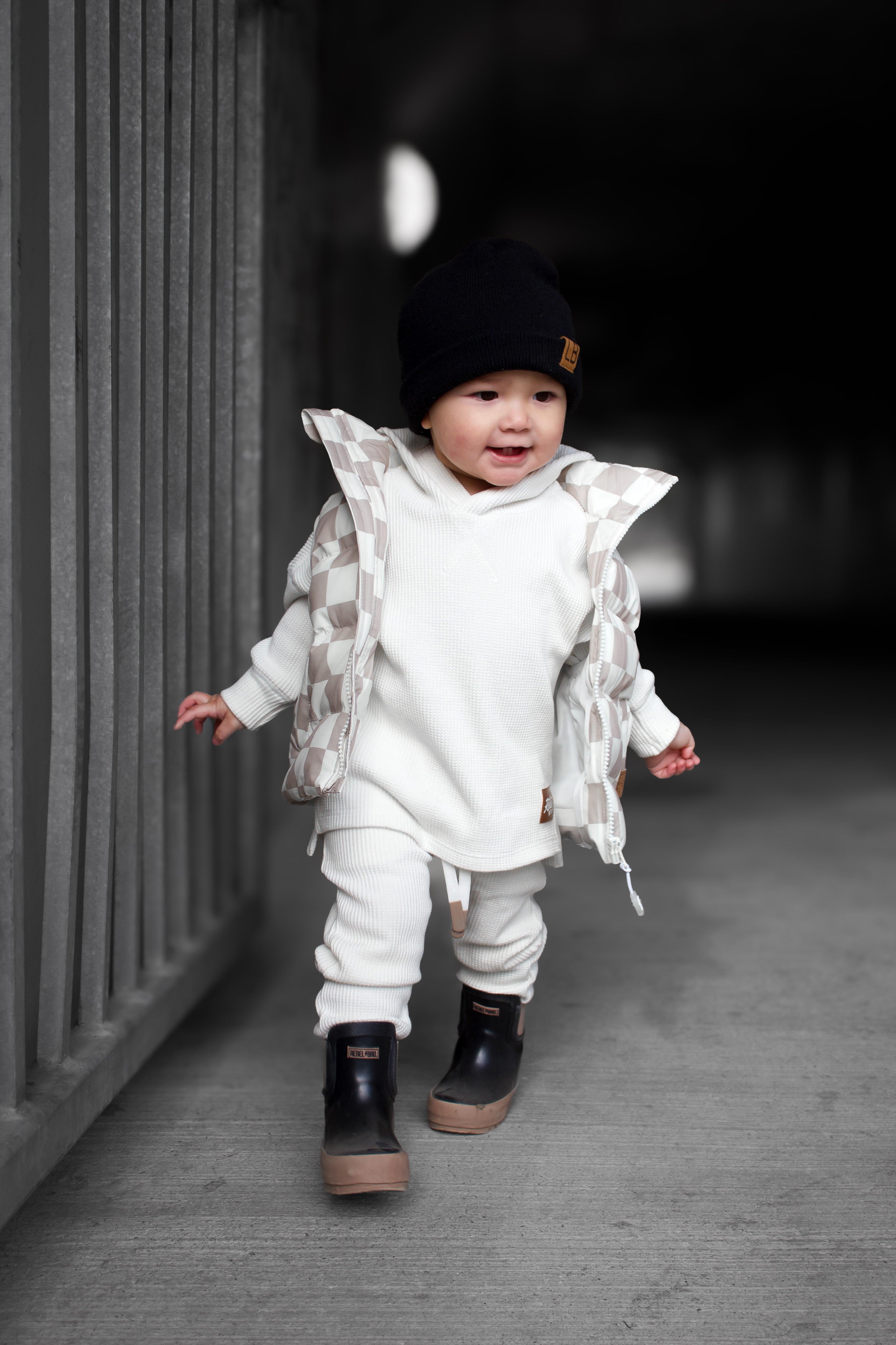 Organic, Breathable Comfort : Made with 95% organic waffled cotton + 5% spandex, giving the perfect blend of cozy texture and stretch that keeps up with playtime and downtime.