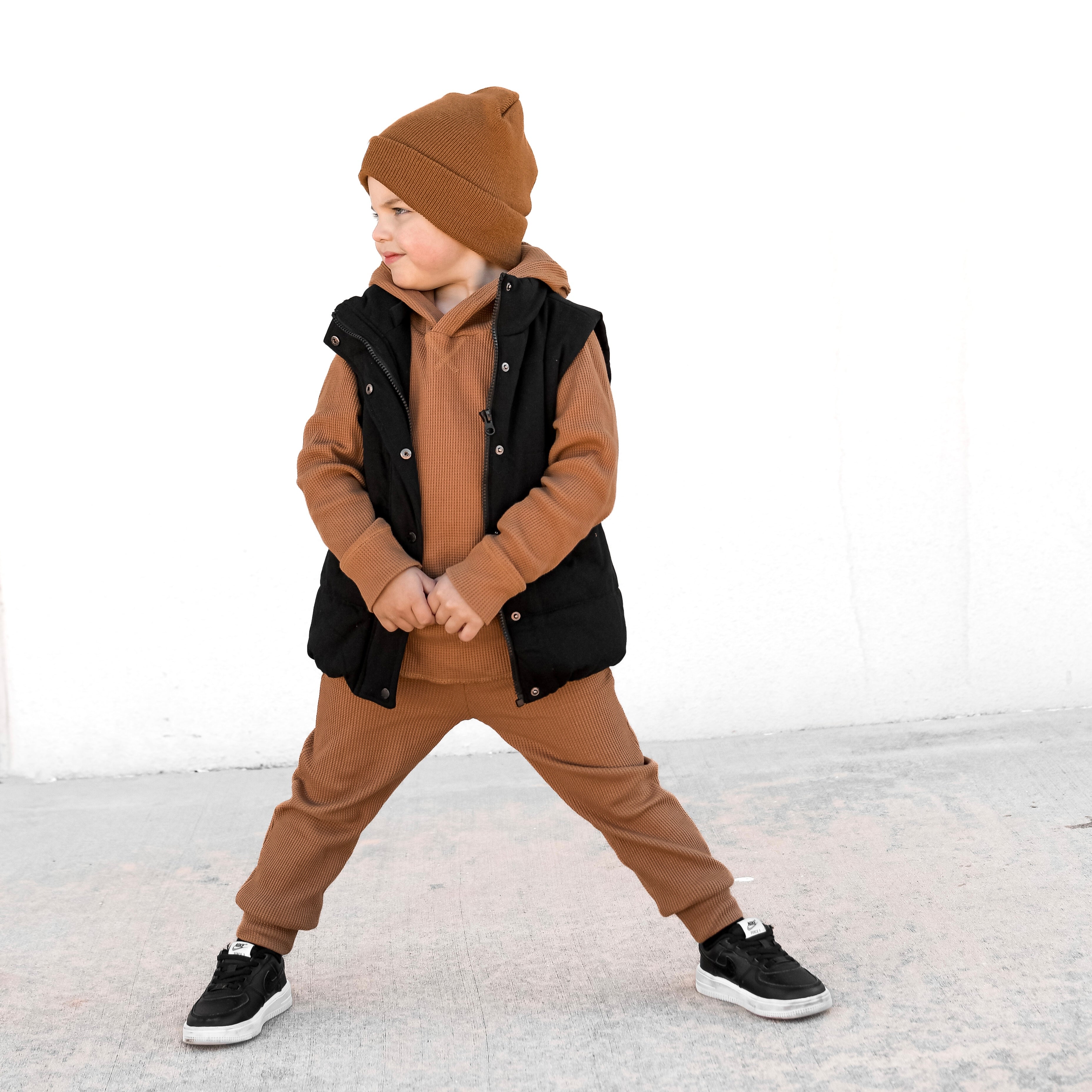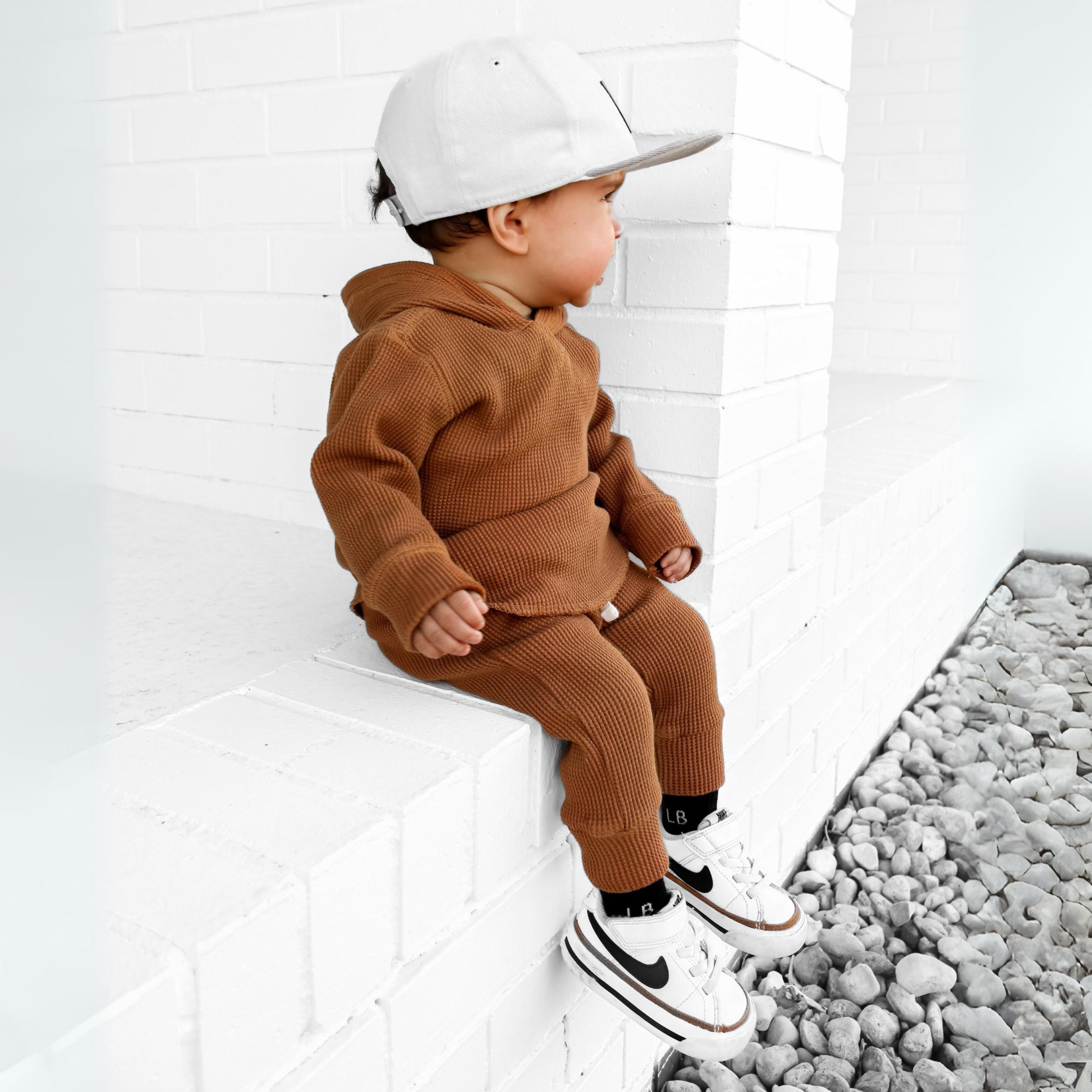 Organic, Breathable Comfort : Made with 95% organic waffled cotton + 5% spandex, giving the perfect blend of cozy texture and stretch that keeps up with playtime and downtime.