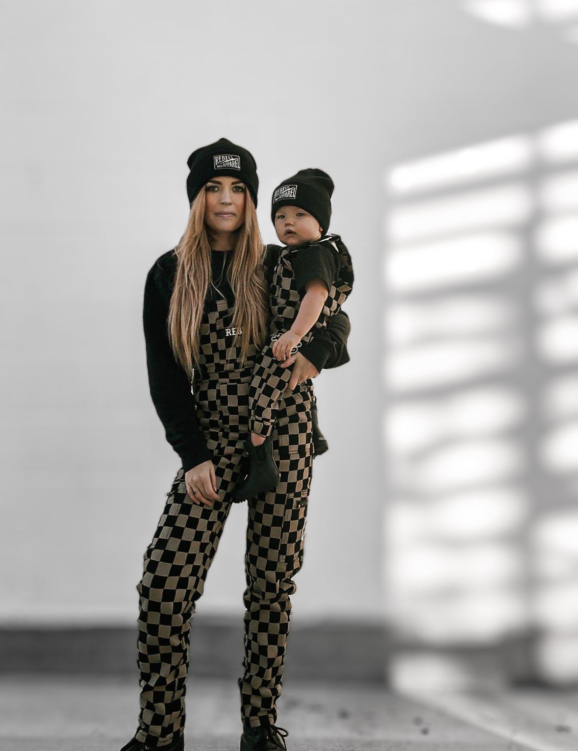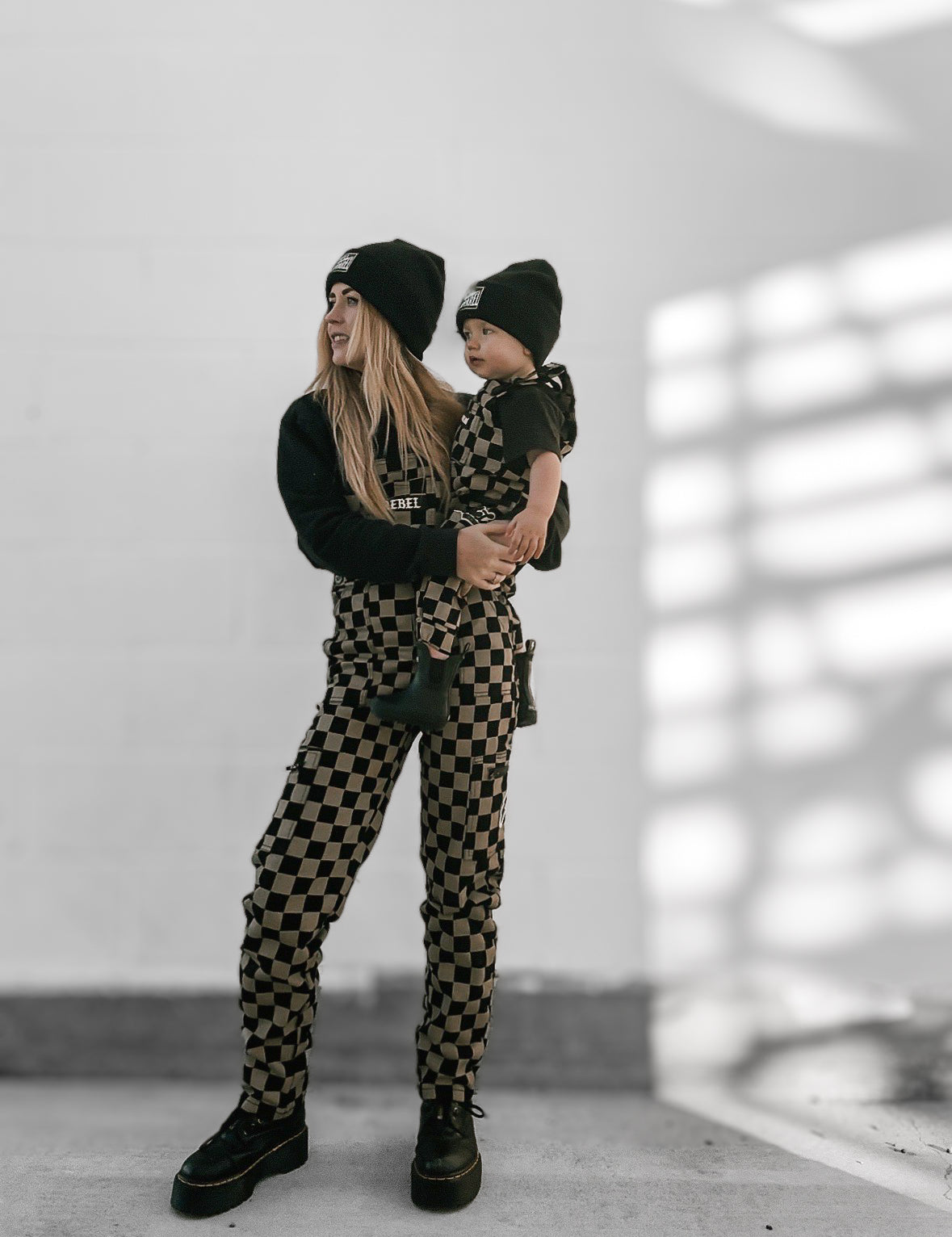 Women's Overall in Checkered Black + Taupe