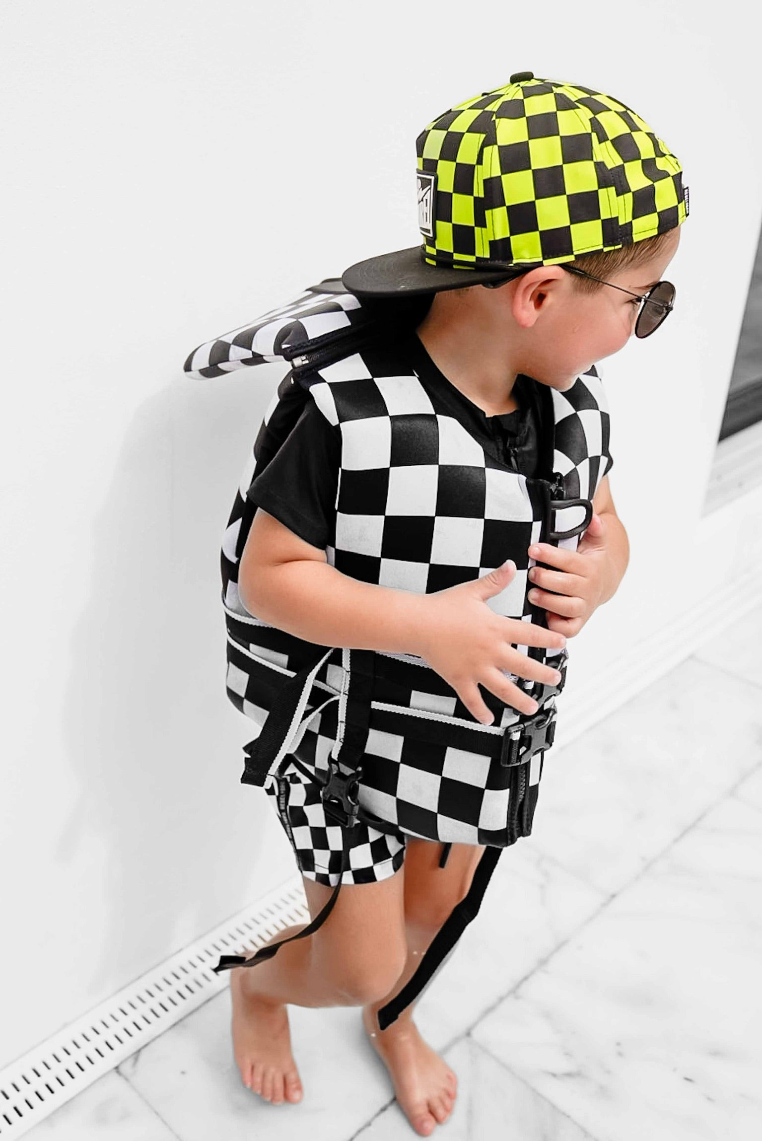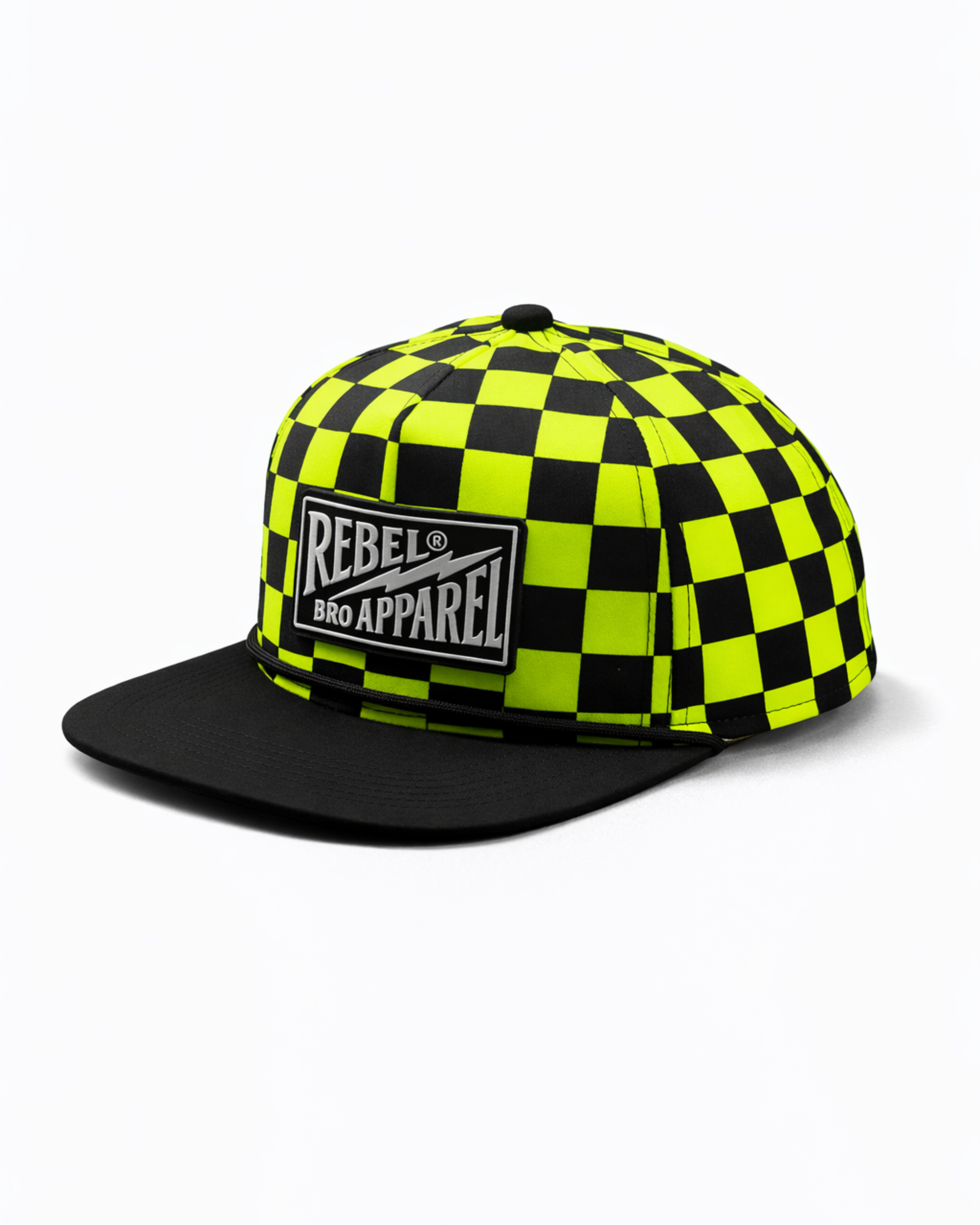 Hydro Snapback in Neon Electric Lime + Black Checkered