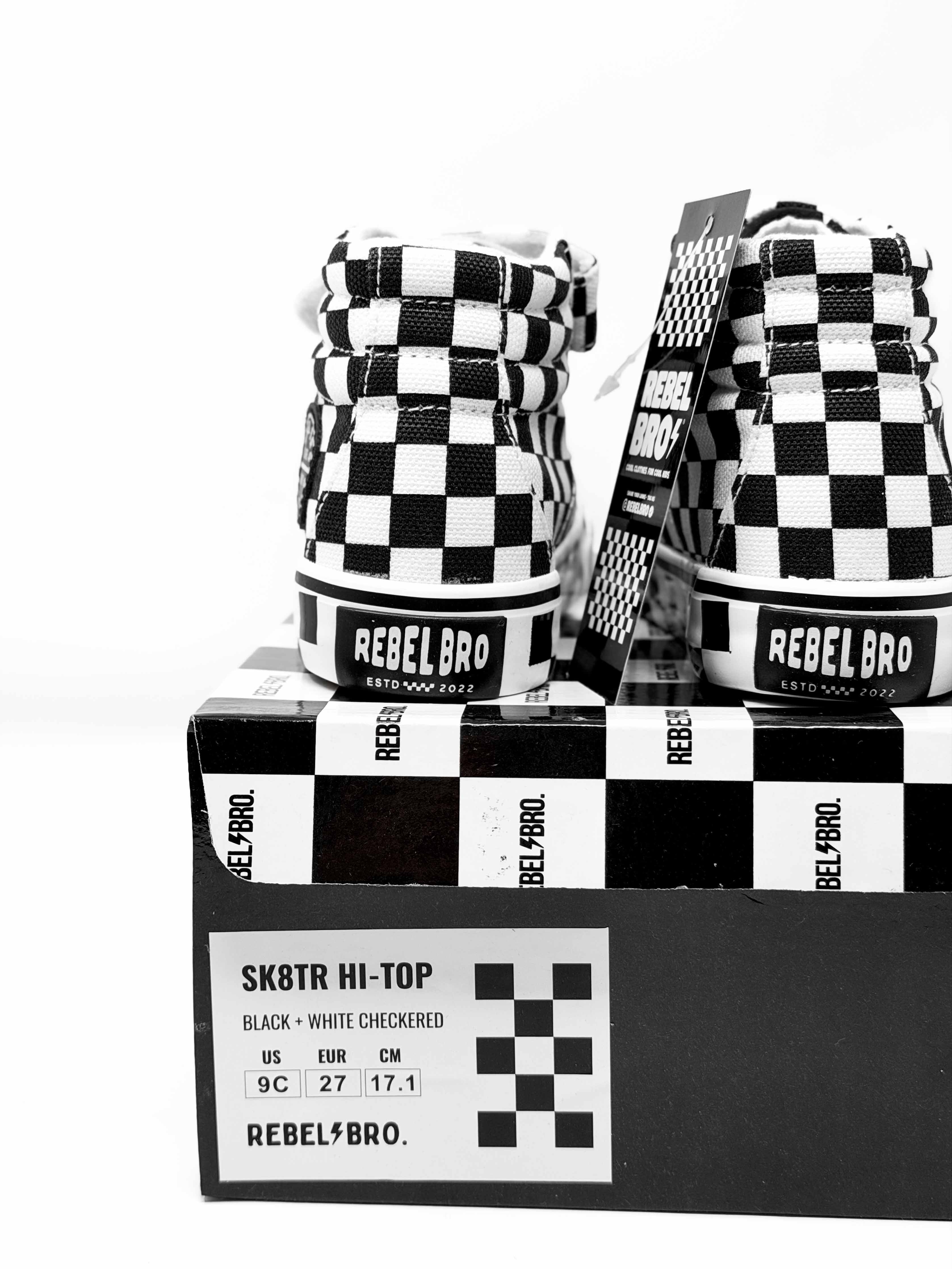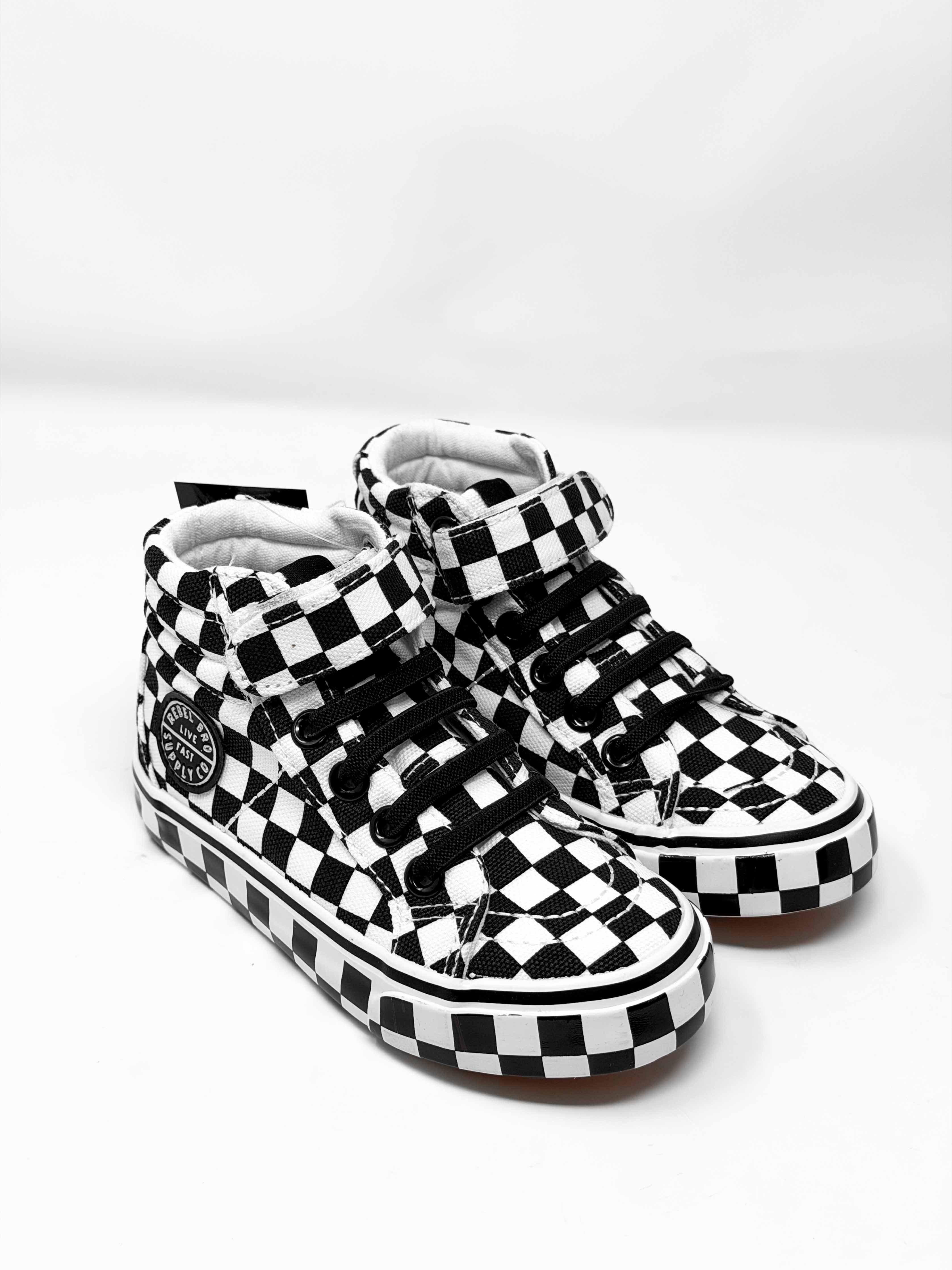 Checkered Side Soles : A signature Rebel Bro touch for that bold street-style look.