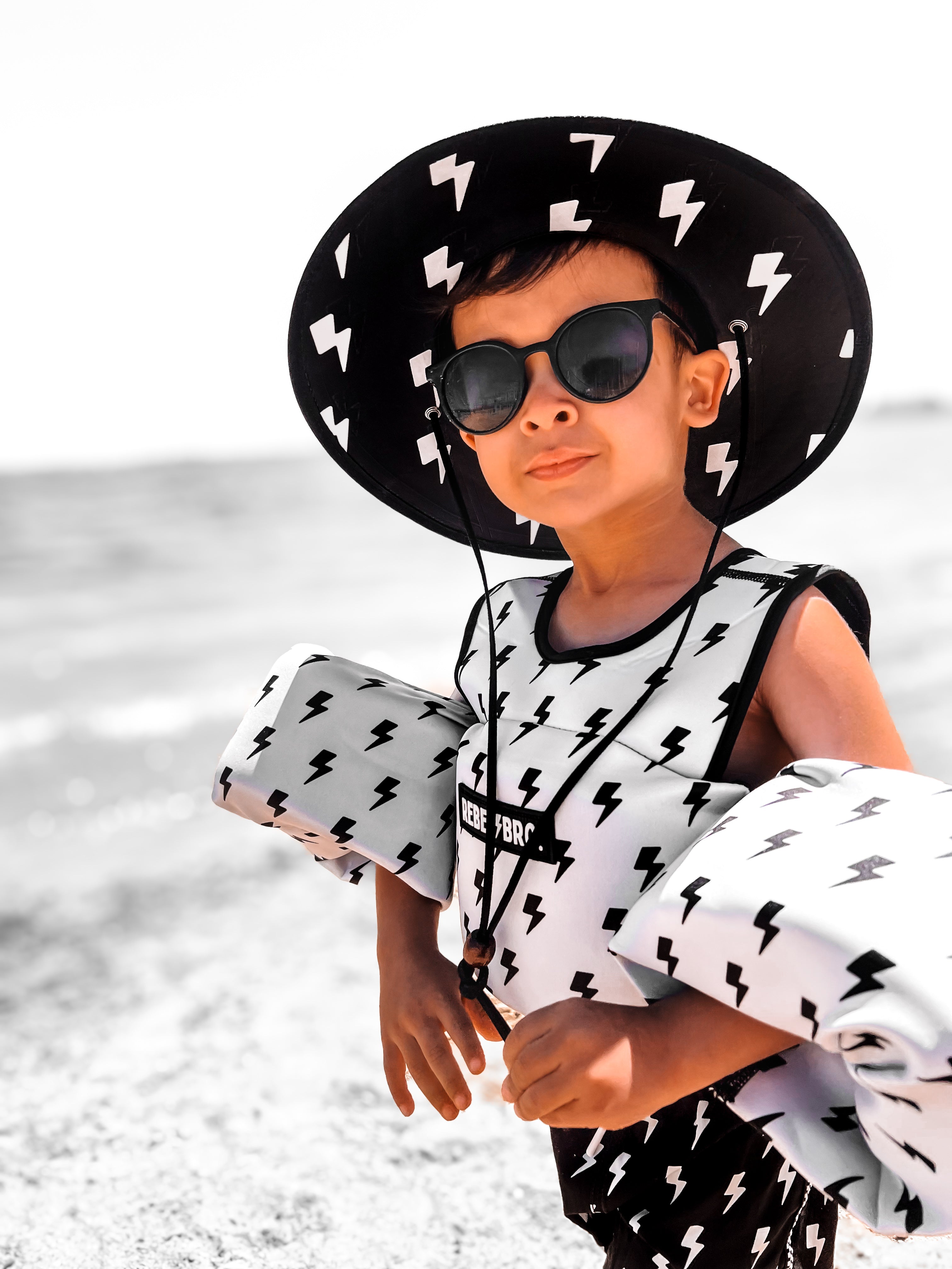 Picture-Perfect Style : A timeless beach-day essential with that cool-kid Rebel Bro twist—style you’ll want in every vacation photo.